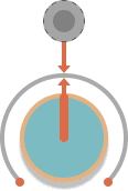 Rotational travel decreases as the contact point is moved further from the rotary centre, providing the user more precision