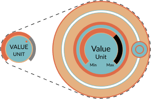The space afforded by using the point indicator allowed for a value and unit reading in the centre of the rotary